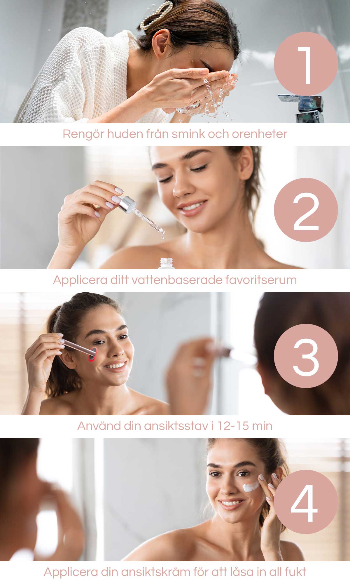 Ansiktsstavens kompakta och lätta design gör den idealisk för att ta med i sminkväskan, så att du kan njuta av professionell hudvård var du än är. Skaffa din idag för en strålande hy, oavsett destination!